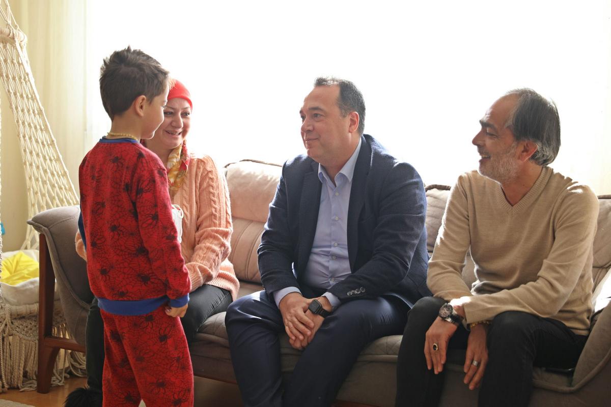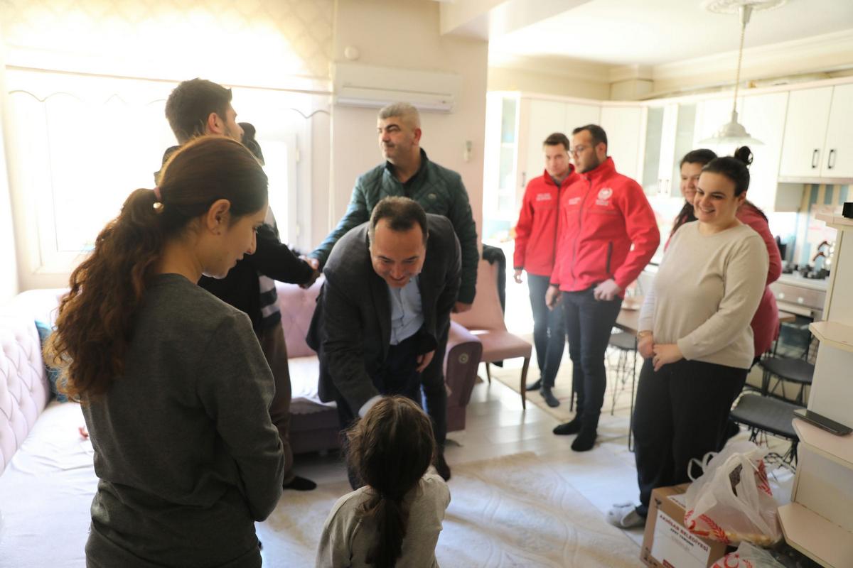 Depreme Hatay ve Kahramanmaraş’ta yakalanan depremzedeler ile bir süre sohbet ederek geçmiş olsun dileklerini ileten Başkan Dutlulu, depremzede çocuklarla da yakından ilgilenerek çeşitli hediyeler verdi.