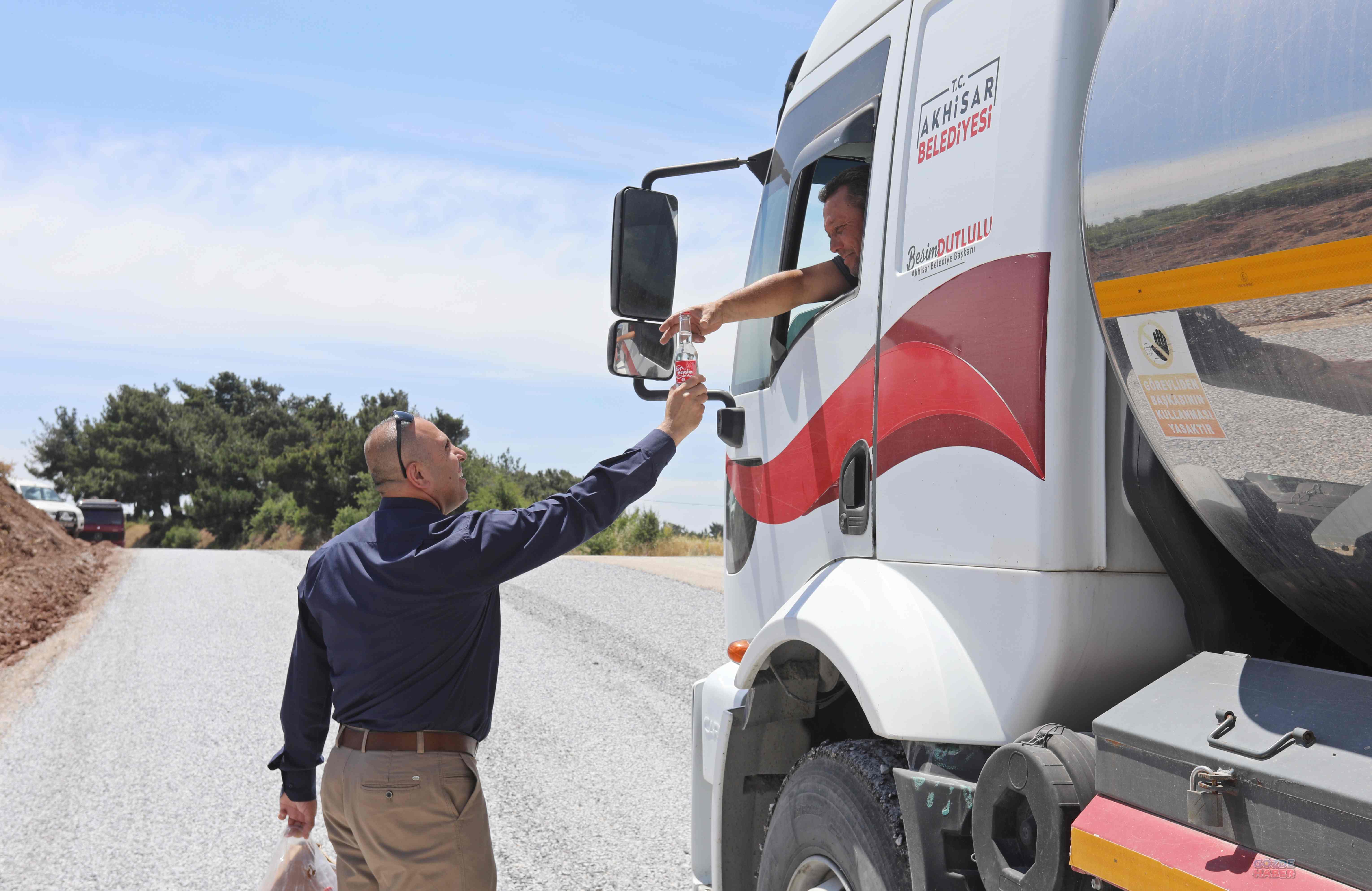 Yaptığımız yolu bugün muhtarlarımız ve ekiplerimiz ile birlikte inceledik. Sıcak havada çalışan mesai arkadaşlarımıza gazoz ikramında bulunduk. Emeği geçen katkı sağlayan herkese teşekkür ederim. Akhisar’ımız için tüm gücümüzle çalışmaya devam edeceğiz” ifadelerini kullandı.