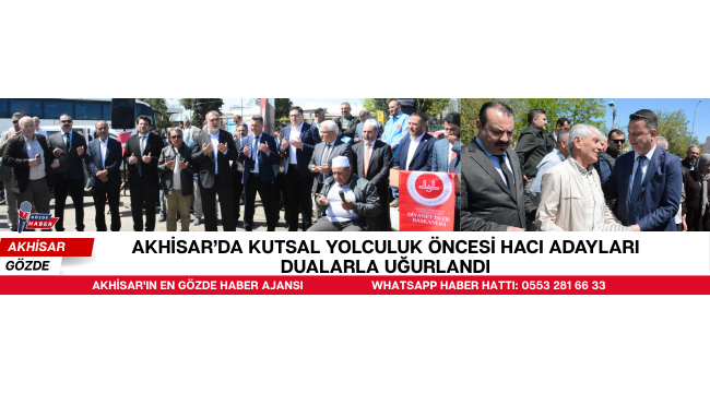 Akhisar’da hac ibadetini yerine getirmek üzere kutsal topraklara gidecek vatandaşlar için uğurlama programı düzenlendi. 20 Nisan Pazartesi günü saat 14.00’te Akhisar Otobüs Terminali’nde gerçekleştirilen program, Akhisar Müftülüğü koordinasyonunda ve Diyanet İşleri Başkanlığı organizasyonuyla yapıldı.