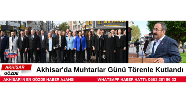 19 Ekim Muhtarlar Günü, 22 Ekim Çarşamba günü saat 09.30’da Milli Egemenlik Meydanı’nda düzenlenen törenle kutlandı. Program, Akhisar Muhtarlar Derneği Başkanı ve Bünyan Osmaniye Mahallesi Muhtarı İhsan Gümüş’ün, Atatürk Anıtı’na çelenk sunulmasıyla başladı. Ardından Akhisar Belediye Bandosu eşliğinde saygı duruşu yapıldı ve İstiklal Marşı okundu. Günün anlam ve önemine dair konuşmayı Akhisar Muhtarlar Derneği Başkanı İhsan Gümüş gerçekleştirdi.