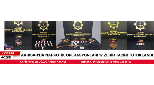 Akhisar Cumhuriyet Başsavcılığı koordinesinde, Narkotik Suçlarla Mücadele Şube Müdürlüğü ile Akhisar Narkotik Suçlarla Mücadele Büro Amirliği ekiplerince, uyuşturucu madde ticareti yapan şahıslara yönelik 1-20 Nisan tarihleri arasında kapsamlı operasyonlar gerçekleştirildi.