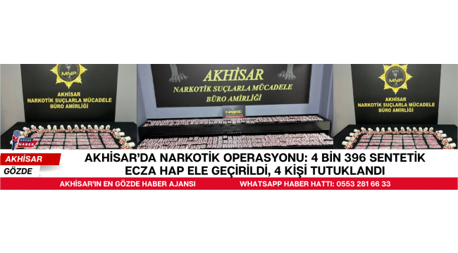 Narkotik Suçlarla Mücadele Şube Müdürlüğü ile Akhisar Narkotik Suçlarla Mücadele Büro Amirliği ekiplerinin titizlikle sürdürdüğü çalışmalar sonucunda, uyuşturucu veya uyarıcı madde ticareti yaptığı değerlendirilen 4 şüpheliye yönelik operasyon düzenlendi.