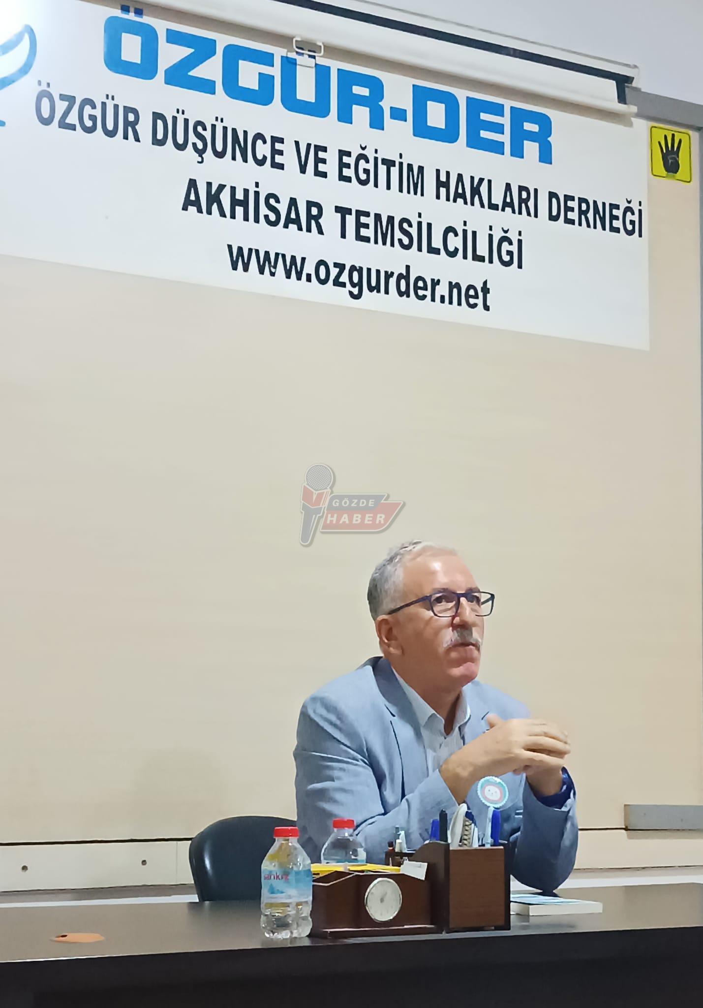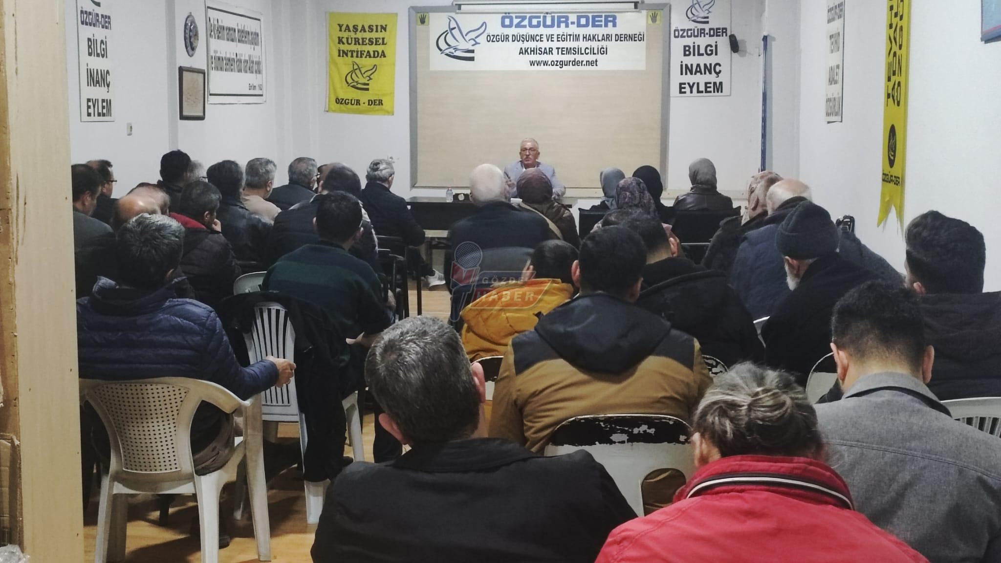 Akhisar Özgür-Der Temsilciliği'nde düzenlenen programda yazar Aytekin Yılmaz ''Yüzleşerek Barışmak '' konusunu anlattı.