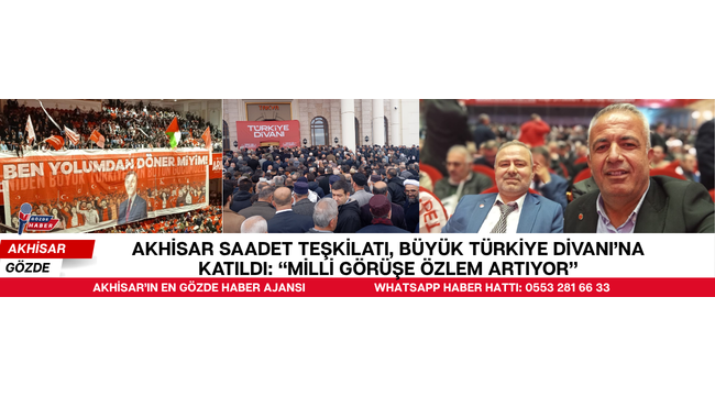 Saadet Partisi tarafından 19 Nisan 2026 tarihinde Ankara’da düzenlenen Büyük Türkiye Divanı Toplantısı’na, Akhisar Saadet Partisi İlçe Teşkilatı yönetimi ve mahalle temsilcileriyle birlikte katılım sağladı. Ankara’da bulunan Ankara Kongre Merkezi’nde gerçekleştirilen programa Türkiye genelinden yoğun ilgi olduğu belirtildi.
