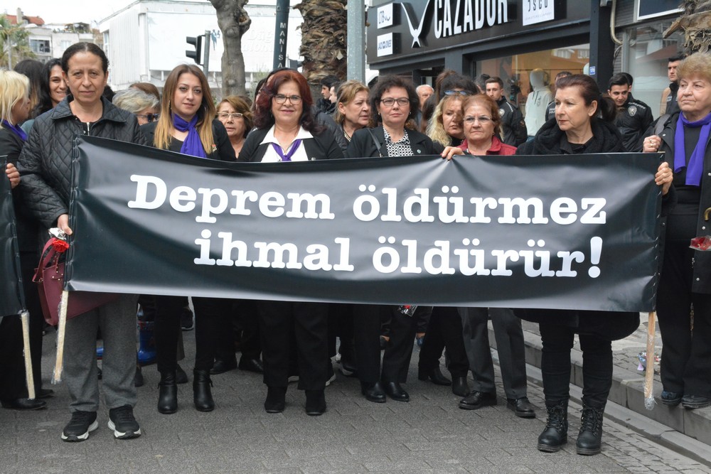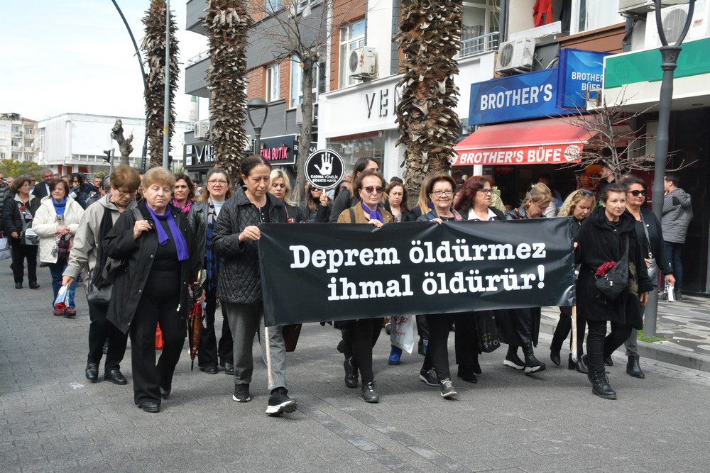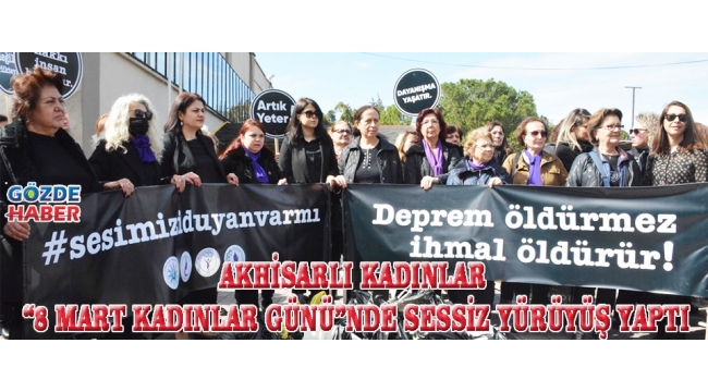 Akhisar Kadın Derneği, 8 Mart Kadın Dayanışma Derneği, Akhisar Kadın Meclisi, Akhisar Kadın Girişimi Üretim ve İşletme Kooperatifi tarafından ortaklaşa düzenlenen yürüyüş asrın felaketi olarak tanımlanan ve 10 İl ile İlçelerinde büyük yıkıma sebep olan deprem dolayısıyla sessiz yürüyüş şeklinde yapıldı.