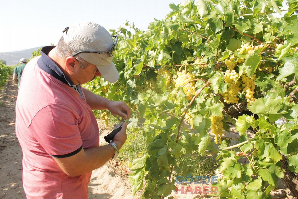 Hasat için bağı temsilen erken saatte toplanan numunelerin şırası çıkarılır. Bu şıraların derecesi ölçüldüğünde refraktometre de %23, potasa derecesinde ise 12-13 olmalıdır.Eksik olan her dereceye karşılık bağın hasadı refraktometre derecesine göre 2, bome derecesine göre 3 gün geciktirilmelidir.