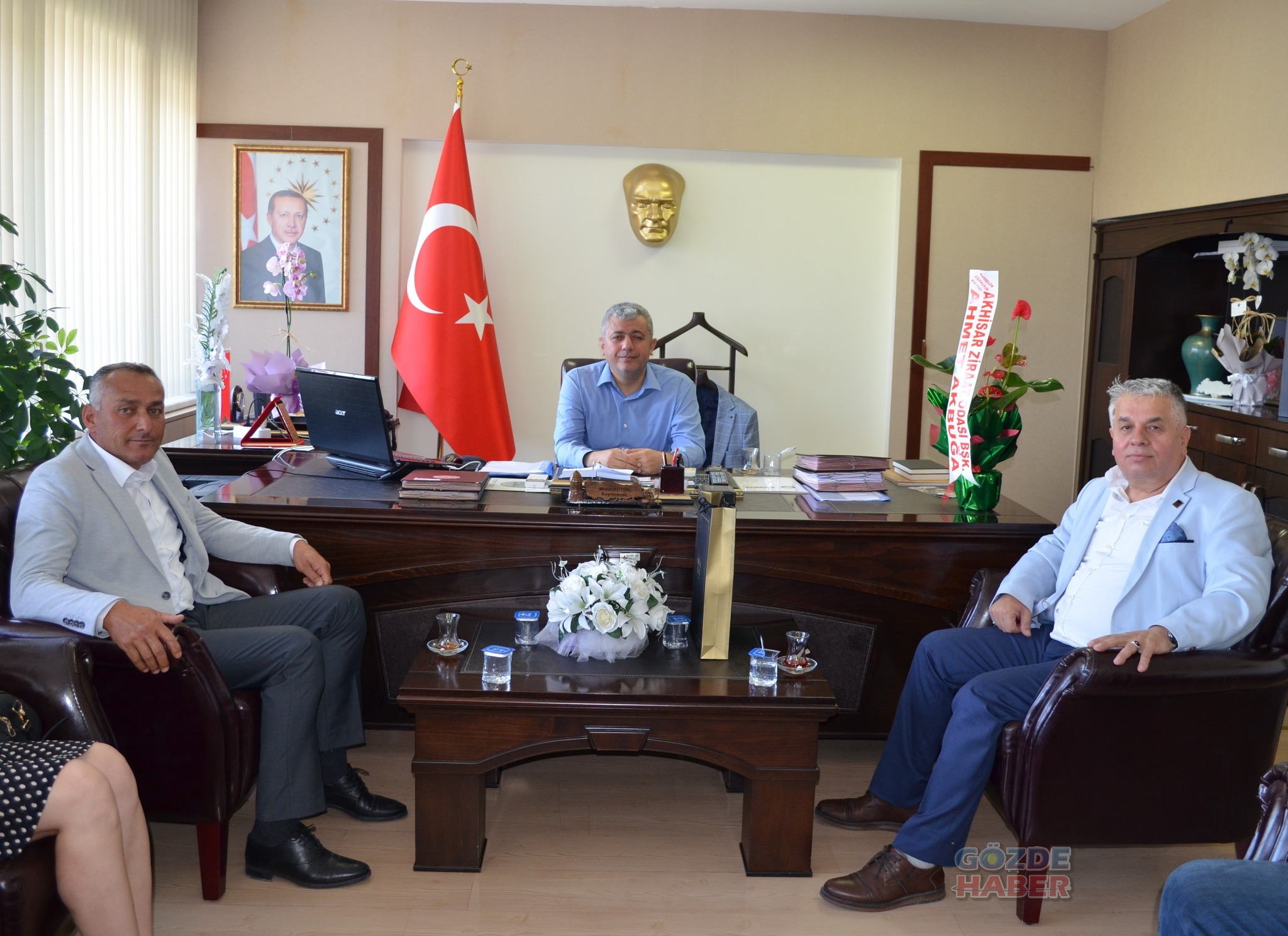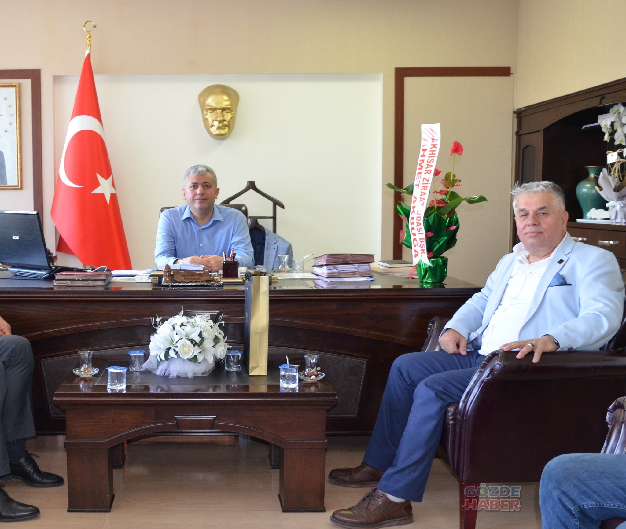 Akhisar Ziraat Odası Başkanı Ahmet Akbuğa ve beraberindeki heyet , Akhisar Kaymakamı Murat Kütük’ü makamında ziyaret etti.