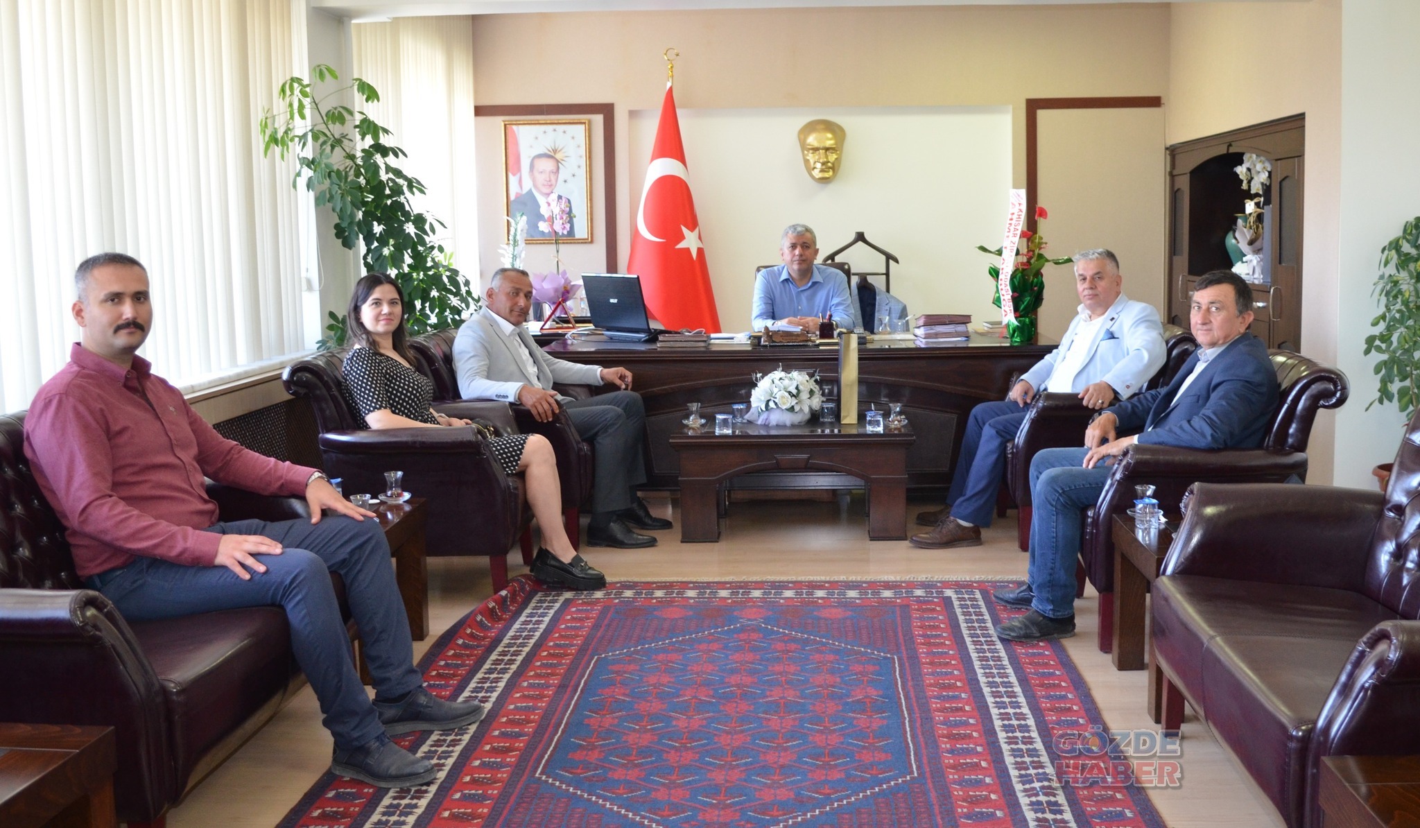 Kaymakamlık ziyaretinde Akhisar Ziraat Odası Başkanı Ahmet AKBUĞA, Meclis Başkanı Şehabettin İNAL, Yönetim Kurulu Başkan V. Tunay AYTAN, Genel Sekreter V. Özge GÜNAY, Tarım Danışmanı Sait KAYA, Kimyager Tuğba İŞÇİ yer aldı.