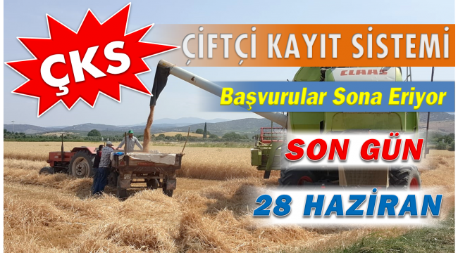 Çiftçi Kayıt Sistemi (ÇKS) 2019 yılına ait kayıt ve güncelleme başvuruları için, 28 Haziran 2019 Cuma günü mesai bitiminde müracaat süresi sona erecek.