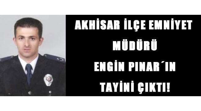 2014 Eylül ayında Manisa İl Emniyet Müdürlüğü Koruma Şube Müdürlüğü´nden Akhisar İlçe Emniyet Müdürlüğüne atanmasından bu yana ilçemizde görev yapan 2.Sınıf Emniyet Müdürü Engin Pınar´ın tayini Bitlis´e çıktı. Emniyet Genel Müdürlüğü bünyesinde görevli toplam 627 personelin atama ve yer değiştirme işlemleri gerçekleştirildi. 2008 Yılında Akhisar İlçe Emniyet Müdür Yardımcılığı ve Kaçakçılık, Organize Suçlar Grup Amirliği görevinden, Saruhanlı İlçe Emniyet Müdürlüğüne atanan Engin Pınar, 2012 yılında Manisa İl Emniyet Müdürlüğü Koruma Şube Müdürlüğü´nde görev almıştı. 2014 yılında ise Akhisar İlçe Emniyet Müdürlüğüne atandı ve 6 yıllık Akhisar görevinin ardından tayininin Bitlis´e çıktığı bilgisi edinildi.