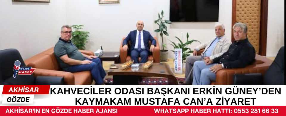 Akhisar Kahveciler Odası Başkanı Erkin Güney, beraberindeki dernek yöneticileriyle birlikte Akhisar Kaymakamı Mustafa Can’ı makamında ziyaret etti.