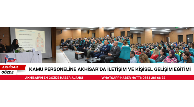 Akhisar’da kamu çalışanlarının mesleki gelişimine katkı sağlamak amacıyla “Kişisel Gelişim ve İletişim” konulu hizmet içi eğitim semineri düzenlendi. Akhisar Kaymakamlığı Şeyh İsa Konferans Salonu’nda gerçekleştirilen seminere, çeşitli kamu kurum ve kuruluşlarında görev yapan personel yoğun ilgi gösterdi.