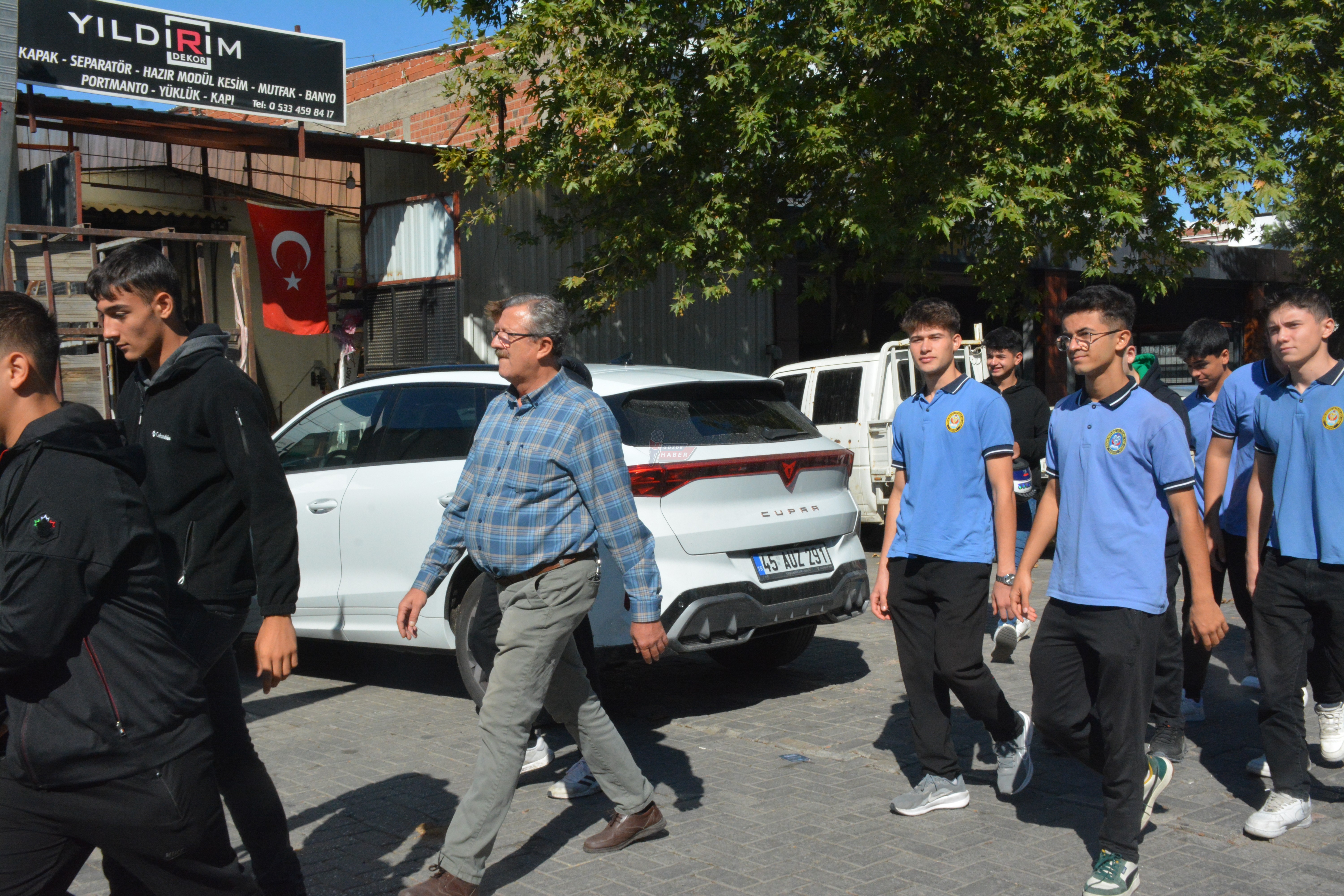 Kutlama etkinlikleri saat 11.00’de sanayi sitesi içinde düzenlenen kortej yürüyüşüyle başladı. Akhisar Kaymakamı Mustafa Can’ın da katıldığı yürüyüşe, ilçe protokolü, öğretmenler, öğrenciler ve sanayi esnafı yoğun ilgi gösterdi. Yürüyüşün ardından tören alanında saygı duruşu yapıldı ve İstiklal Marşı okundu.