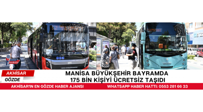 Manisa Büyükşehir Belediyesi, Ramazan Bayramı süresince sunduğu ücretsiz toplu taşıma hizmetiyle vatandaşların bayram ziyaretlerini kolaylaştırdı. MANULAŞ ve ulaşım kooperatiflerine bağlı araçlarla verilen hizmetten toplam 175 bin kişi yararlandı.