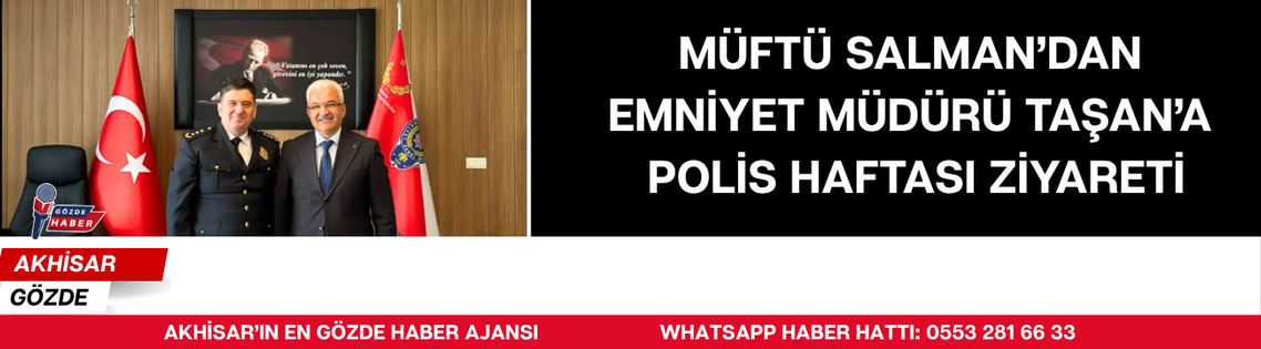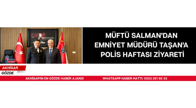 Polis Teşkilatı’nın 181. kuruluş yıl dönümü dolayısıyla Akhisar İlçe Müftüsü Muhammet Salman, Akhisar İlçe Emniyet Müdürü Hasan Taşan’ı makamında ziyaret etti.