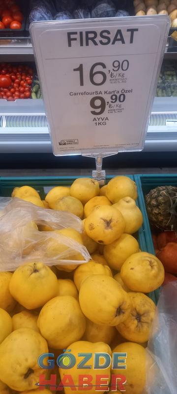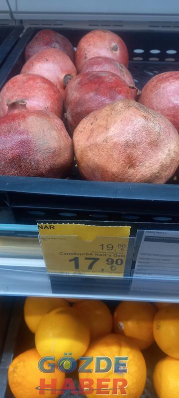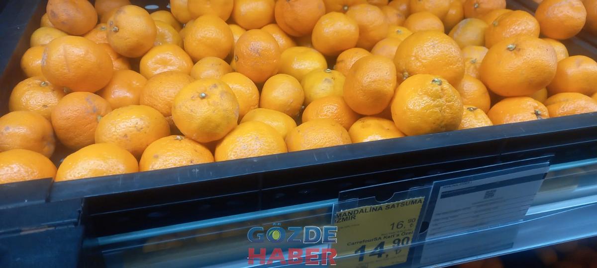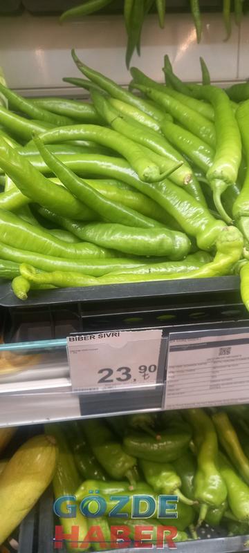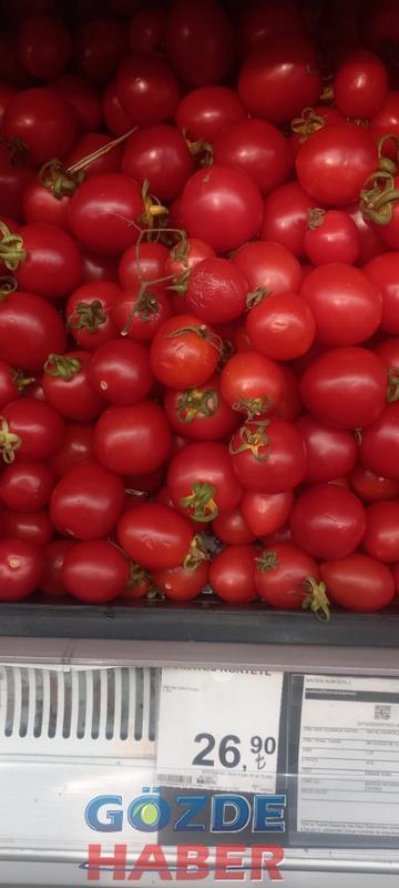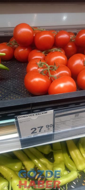 Marketteki pembe domates 30 Lira 90 Kuruş, sivri biber 23.90, salkım domates 27.90, dolma biber 25.90, salatalık 24.90, kokteyl domates 26.90, nar 17.90, ayva 9.90, limon 12.90, elma 10.90, mandalina ise 14.90 kuruş olarak açıklanmış ve tezgahtaki yerini almış. Müşteriye de satmaktadırlar.